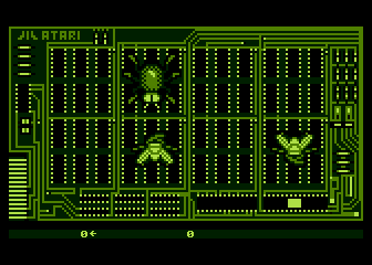Visually, Bug Hunt embraces the limitations of the Atari XEGS hardware with colorful, cartoon-style insect sprites set against the stark backdrop of a circuit board. Each bug is rendered in bright hues, making them easy targets against the dark PCB tracks. Despite the low resolution, the designers achieve remarkable clarity: you can instantly distinguish a spider from a butterfly, or a tick from a frog.