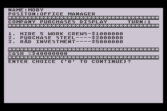 Random business events inject unpredictability into every financial quarter. In its original TRS-80 edition, around 25 “surprises” might buff or burden your company. The MS-DOS BASICA release expands that roster to over 65, ranging from sudden steel price hikes to unexpected government subsidies. These twists force you to adapt your strategy on the fly, keeping the challenge fresh even after dozens of playthroughs.