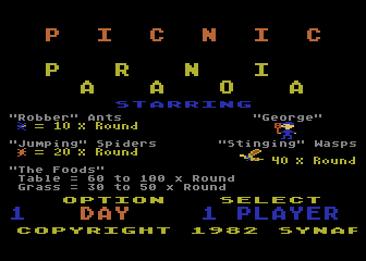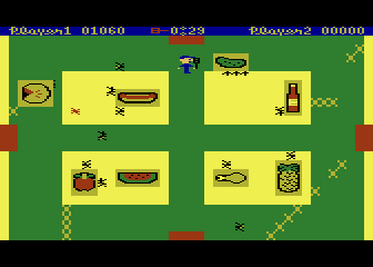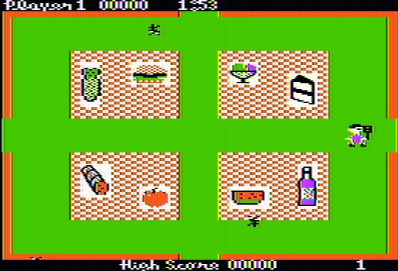 While the backgrounds remain mostly static—green grass, a picnic blanket, perhaps a hint of park scenery—the simplicity works in the game’s favor. There’s no visual clutter to distract from frantic swats and sprays, and the clean look complements the arcade-style gameplay. On modern displays, the pixel art-style sprites are crisp and nostalgic, giving Picnic Paranoia a timeless appeal.
