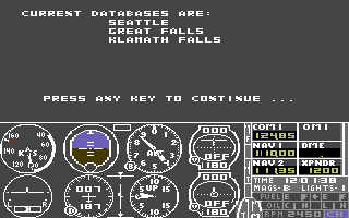 Scenery Disk 4 integrates seamlessly with subLOGIC’s Flight Simulator II and its compatible titles, offering pilots an effortless installation process. Upon loading the add-on, you’re prompted to select one of the three covered regions—Klamath Falls, Seattle or Great Falls—each complete with its own network of airfields and navigational aids. The setup utility walks you through the disk-based installation, making the process intuitive even for newcomers to flight simulation add-ons.