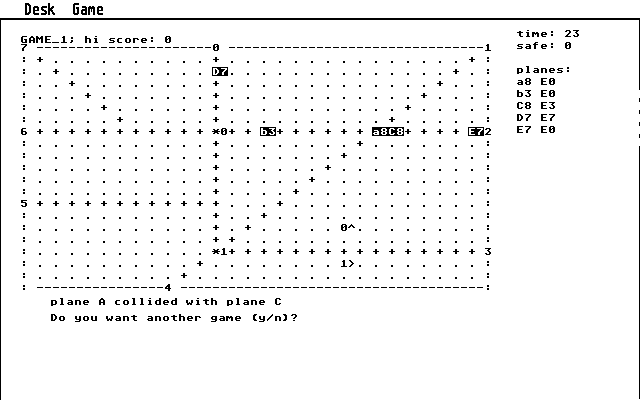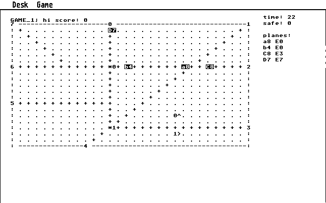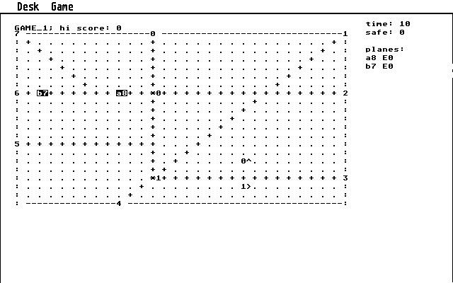 The controls are intuitive: select a plane by clicking or highlighting its letter, then issue commands that can take effect immediately or be delayed until the aircraft reaches a beacon, marked by ‘*’ on the radar. Lowercase letters represent jets, uppercase letters prop planes, and each letter is followed by a digit indicating current altitude. You’ll quickly learn to manage dozens of flights simultaneously, juggling takeoffs, landings, and holds without letting any aircraft stray off course or conflict with another.