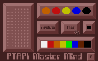 Atari Master Mind distills the essence of the classic code-breaking board game into a compelling solo digital experience. The computer conceals a secret sequence of five colored pegs, and your task is to deduce that sequence within a limited number of guesses. Each attempt is met with immediate feedback in the form of small black and white dots: black dots for perfectly placed colors, white dots for correct colors in incorrect positions. This simple mechanic encourages logical deduction and pattern recognition, making each playthrough a fresh mental challenge.