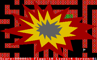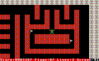 Autorama offers a deceptively simple premise: guide your racing car through a series of maze-like levels, collect all the flags before your gas meter hits zero, and avoid or outsmart pursuing enemy vehicles. The controls are tight and responsive, reflecting the game’s 68000 assembler roots. Steering feels precise, and the ability to release a puff of smoke adds a layer of strategic depth—timing your smoke deployment can mean the difference between a clean escape and a devastating crash.