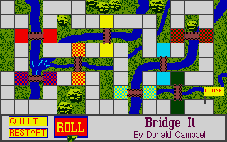 Created in GFA BASIC 3.5, Bridge It’s visual presentation is modest but functional. The board is rendered in clean, brightly colored blocks that clearly distinguish each square’s function. While the graphics won’t rival modern 3D titles, they serve the gameplay effectively, ensuring players can quickly identify bridges and plan their routes.