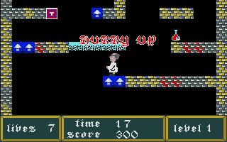 The level design is intuitive yet challenging. Although each stage spans only one screen in width, the vertical layout adds depth and introduces multilayered traversal. Players will find themselves jumping between ledges, maneuvering through narrow shafts, and descending quickly to reach the exit door at the bottom. These vertical challenges require memorization of hazards and speed in execution.