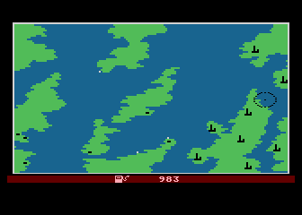 The command mode acts as your strategic hub, letting you switch between joystick-controlled modes: up for navigation, down for torpedo strikes, left for sea-to-air missile defenses, and right for sea-to-land assaults or refueling stops. Fuel management adds another layer of tension—every nautical mile you traverse drains your reserves, so you’ll need to plot efficient routes back to friendly ports. Hidden missile bases and prowling enemy ships keep the stakes high, requiring constant vigilance and quick decision-making.