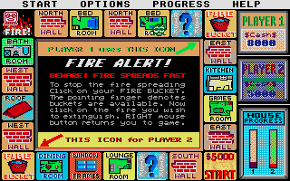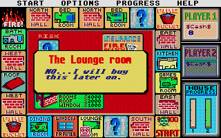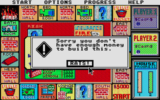 Finally, the money system and progress meter offer clear feedback on your journey. You start with zero dollars, earn $5,000 each time you pass Start, and must budget effectively to afford costly windows or recover burned pieces. The progress meter on the right side of the screen visually tracks each player’s distance from the 16-piece goal, heightening the sense of competition in two-player matches or the personal challenge in solo mode.