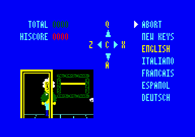 Flunky’s visual style is a textbook example of Don Priestley’s ingenious solution to Spectrum attribute-clash limitations. Large, chunky sprites dominate the screen, each character rendered with enough detail to convey personality—be it the stern gaze of a palace guard or the playful wink of Princess Diana’s silhouette. The block-based backgrounds provide a stark but effective contrast, allowing sprites to pop without the usual clash artifacts that plagued earlier Spectrum titles.