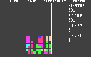The controls are straightforward, mirroring the simple left/right movement and rotation you’d expect from a Tetris derivative. As you progress through the ten skill levels, the drop speed increases notably, testing both your reflexes and your planning skills. Beginners will appreciate the gentler early levels, while puzzle veterans can jump straight into the high-speed chaos.