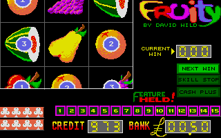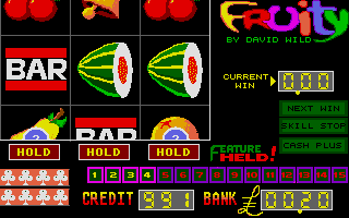 Fruity delivers a straightforward yet surprisingly deep fruit machine simulation, allowing players to tailor their sessions by choosing between 1 and 999 starting coins. The decision of how many coins to begin with immediately shapes your risk-reward approach, whether you prefer a cautious playthrough or high-stakes spinning. This level of customization, paired with the tight control of 68000 machine code, makes each spin feel decisive and authentic.