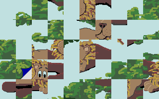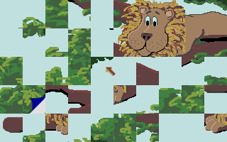 Jumble Up offers a straightforward yet satisfying puzzle experience built around classic jigsaw mechanics. From the moment you load your chosen image—be it one of the three included pictures or a user-supplied Degas or Neochrom file—you’re presented with fifty shuffled pieces to drag into place. The controls are intuitive: left-click and hold to grab a piece, move it freely, and release to see if it snaps into the correct spot. If it doesn’t fit, it snaps back to its origin, encouraging you to keep experimenting until each fragment finds its home.