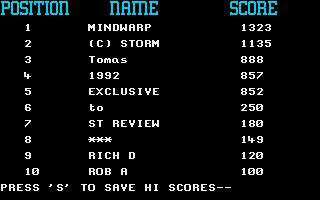 Animations are smooth, with blocks dropping and locking into place without any distracting flicker or tearing. The Atari ST’s palette may be limited compared to modern machines, but Mind Warp uses color contrast intelligently to differentiate piece types and emphasize cleared lines. Each vanishing line triggers a brief flash effect that adds a satisfying visual payoff.