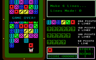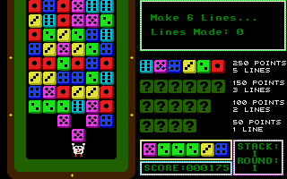 Graphically, Mr Dice embraces a retro aesthetic that harkens back to early STOS creations on the Atari ST. The blocky yet charming dice sprites are rendered in bright, contrasting colors, ensuring that each face value is instantly recognizable even when the screen grows crowded. This clarity is crucial when you’re trying to spot a four, five, or six amidst a chaotic pile.
