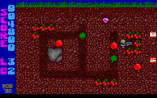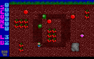 The level layouts are easy to read at a glance: cherries and crystals stand out in vibrant red and blue hues, respectively, making it simple to chart your course. Animations are smooth enough that monster shuffles and digger hops don’t feel jerky, even when the screen is crowded. The occasional flicker during heavy onscreen activity is a minor quirk of the STOS engine rather than a dealbreaker.