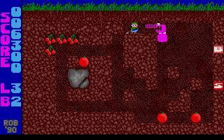 Mr Dig retains the addictive arcade spirit of the original Mr. Do! while adapting its mechanics to the Atari ST via STOS. You take on the role of a plucky digger whose mission is to clear each screen of cherries, dropping down tunnels and avoiding the roaming monsters. The simplicity of collecting six cherries in one go for bonus points encourages strategic planning of your digging path rather than a haphazard shuffle through the level.