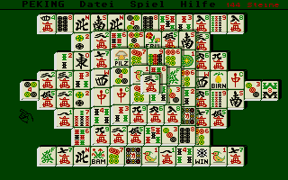As an Atari ST release, Peking 2.0’s graphics remain charmingly retro without ever feeling cramped or cluttered. Tiles are rendered with crisp edges and clear icons, whether you’re in high-resolution color mode or black-and-white low resolution. The overhead perspective is intuitive, giving you a full view of the pyramid structure and making spatial relationships between tiles easy to gauge.
