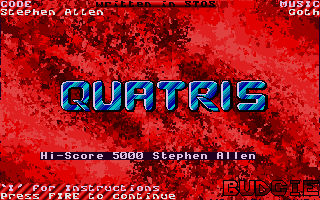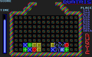 Developed in STOS, Quatris doesn’t rely on flashy animations or 3D effects, but it does a commendable job of keeping visuals clean and readable. Each quat type is distinguished by its color and simple pattern, ensuring you can identify pieces at a glance even when the pile reaches fever pitch.