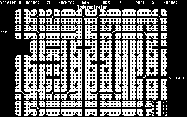 The game’s 13 levels are cleverly designed to introduce new challenges as you progress. Early stages ease you in with mostly straight tracks and few blocks, while later puzzles force you to navigate around obstacles, dead ends, and complex curves. The countdown bonus meter adds pressure: as you deliberate, your potential points steadily tick away, rewarding quick thinking and efficient solutions.