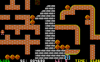 Rockfall’s visuals embrace the retro aesthetic of the original Boulder Dash, rendered in clean, pixel-perfect 68000 assembler graphics. Each element—from crystalline diamonds to rugged stone walls—is distinct and immediately readable, ensuring you never lose track of key objects when the action heats up. The color palette leans into earthy browns and deep blues, evoking the feeling of subterranean caverns lit only by your headlamp.