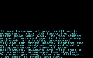The narrative hook in The Village is deceptively simple: you’re a computer expert nearing the end of a three-year contract in an isolated research community. Slowly, you notice colleagues vanishing without explanation, and whispers of a “termination programme” circulate among the nervous staff. This blend of corporate thriller and conspiracy tale keeps you on edge, driving you to uncover who is truly running the facility and why your fellow experts are disappearing.