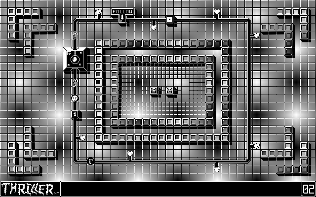 Adding further tension are the various traps scattered along each track. From spiked barriers to disappearing floor panels, these hazards punish hasty movements and force you to memorize each course. Every time you hit an enemy ball or trap, you lose one life; once your lives reach zero, it’s game over. This blend of strategic heart collection, enemy management, and environmental danger makes Thriller a compelling collect ’em-up that balances accessibility with a satisfying challenge curve.