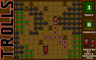 Trolls delivers a deceptively simple premise that unfolds into a tense, maze-based adventure. As Little Billy, you’ll navigate sprawling labyrinths on nine progressively challenging levels. Each maze is riddled with hidden traps and patrolling trolls, forcing you to balance cautious exploration with swift movement. The controls are tight and responsive, reflecting its 68000 assembler roots, so even the most minute input registers instantly on screen.