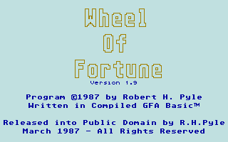 Wheel of Fortune offers a faithful digital adaptation of the classic TV game show, recreating the thrill of spinning the wheel and guessing letters to unveil hidden phrases. Written in GFA Basic, the game faithfully simulates three competitive rounds where two or three players alternate turns, spin the virtual wheel, and attempt to call out consonants or buy vowels. This straightforward setup captures the essence of the broadcast experience without overcomplicating controls or mechanics.