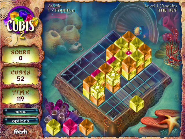 Cubis 2 unfolds on a charming isometric grid where precision and planning merge into addictive puzzle action. Players launch different colored cubes along preset tracks, aiming to integrate them seamlessly with existing stacks on the table. The core objective is deceptively simple: align three or more cubes of the same color in a row or column—or stack them vertically—to trigger a satisfying disappearance and rack up points.