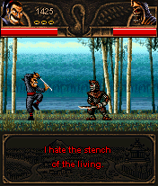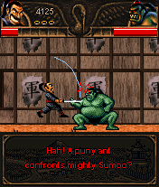 Special effects are minimal but impactful. Sword slashes leave brief motion streaks, and enemy blocks emit a satisfying spark, reinforcing the visceral nature of each clash. When fireballs arc across the screen or bosses unleash their dramatic finishing moves, the limited palette still manages to pop, ensuring you’re never left guessing what’s happening. Overall, the graphics may not push modern hardware, but they serve the game’s fast-paced action beautifully.