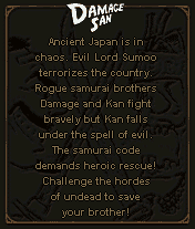 The narrative premise of Damage San is delightfully straightforward: Evil Lord Sumoo has cast a dark spell over Kan, the brother of our hero Damage, and it’s up to Damage to free him and restore peace to Ancient Japan. While the setup is classic samurai-fantasy fare, it’s elevated by witty one-liners and dynamic dialogue that appear across the bottom of the screen during battles. This constant banter keeps the stakes feeling personal and injects a touch of humor into the dire mission.