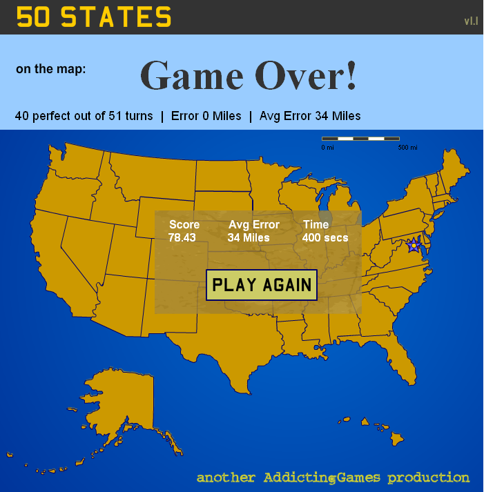 50 States delivers a deceptively simple concept that unfolds into a rich puzzle experience. The core mechanic involves dragging and dropping each of the fifty individual state shapes onto an outline of the United States map. As each state appears one at a time, the player must rely on geographic knowledge, memory, and spatial reasoning to locate its correct position. Misplacing a state leads to a score penalty, encouraging careful consideration with each move.
