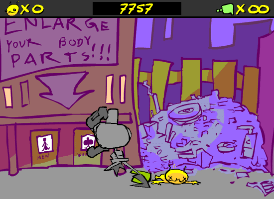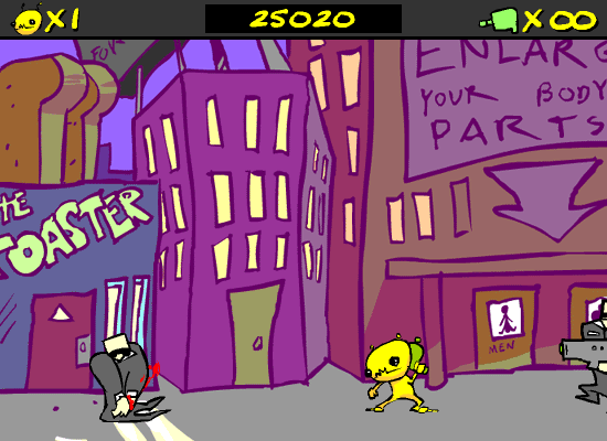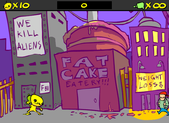 Dan Paladin’s signature hand-drawn style is on full display in Alien Hominid, and it immediately sets the game apart from typical Flash titles of its era. The backgrounds burst with vibrant colors, from sun-bleached cityscapes to neon-bathed alleyways, each layer meticulously sketched to give depth and personality. Characters—from the hunched-over FBI grunts to the oversized tank crushers—pop against the environments, making every firefight crystal clear and easy to track, even in the most chaotic moments.