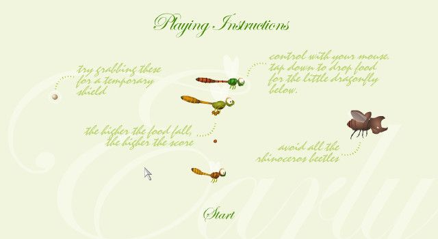 An Early Spring delivers a deceptively simple yet deeply engaging gameplay loop that hinges entirely on the player’s mouse movements. You simultaneously pilot two dragonflies—one active and one supportive—by guiding your cursor across the screen. Tapping the underside of the lead dragonfly against the top of the support dragonfly launches tiny pellets of nectar toward slower, hungry dragonflies in mid-air. The timing and angle of each “droplet” are critical, as a precise trajectory yields more points, especially when executed from higher altitudes.