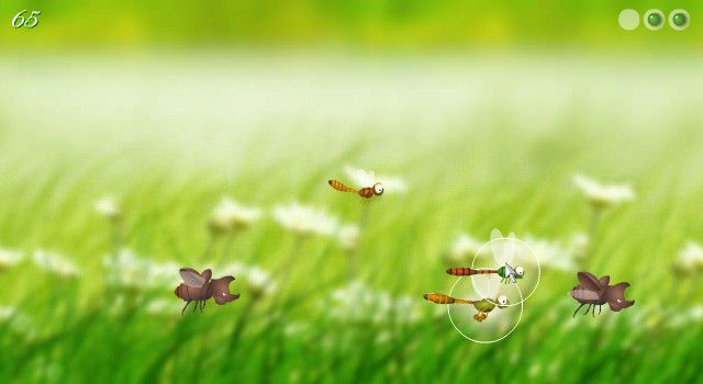 Dragonfly and beetle character designs are charmingly minimalist yet instantly recognizable. Each insect is drawn with clean lines and smooth animations, resulting in flitting wings that feel light and responsive. When you successfully land a pellet, a small burst of pollen particles follows the recipient dragonfly, giving immediate visual feedback and enhancing the satisfaction of a well-aimed shot.
