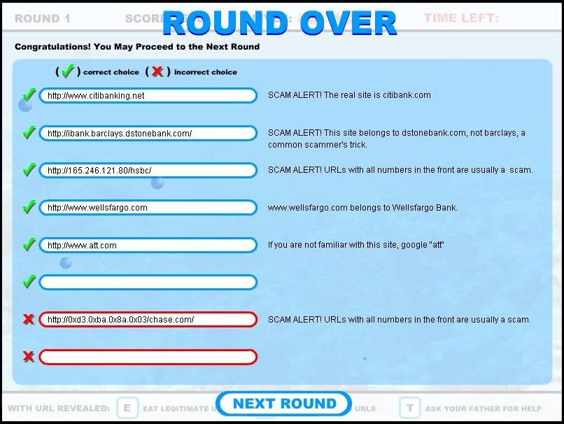 After each round, detailed feedback from Phish Guru reinforces key lessons on spotting fraudulent websites. This instant debrief helps bridge the gap between gameplay and real-world application, ensuring that skills learned underwater translate to safer online habits. The blend of action and education makes for an addictive loop that invites repeated playthroughs.