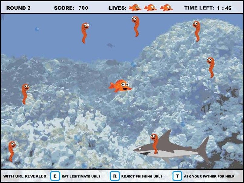 Anti-Phishing Phil offers an intuitive, mouse-driven control scheme that makes diving into its educational mechanics as simple as clicking on a worm. Players guide Phil through an underwater world, selecting whether each revealed website is legitimate or a phishing scam. By pressing E or the up arrow for genuine sites, R or the down arrow for scams, and T for a hint from the Phish Guru, the game balances quick decision-making with accessible support for learners of all ages.