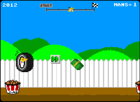 Awexome Cross 98 throws you into the driver’s seat of the Cheat’s iconic monster truck, the Tire, and challenges you to weave through Strong Badia’s most absurd obstacle course. The controls are refreshingly simple: use the left and right arrow keys to steer and the space bar to leap over incoming hazards. From General Tso’s Chicken that scuttles across your path to syrup bottles that slide unpredictably across the track, each level feels like a carefully crafted gauntlet designed to test your reflexes.