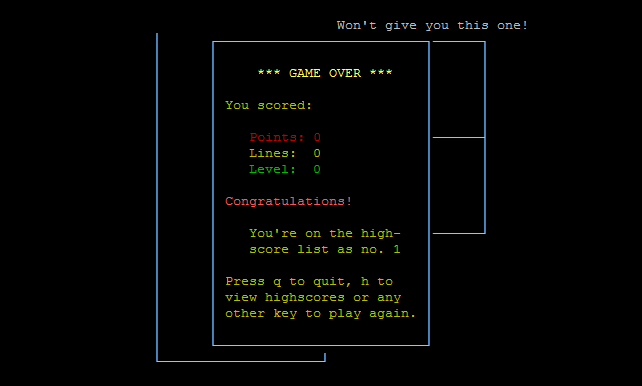 Rather than flashy 3D models or elaborate animations, Bastet embraces a minimalist text-mode interface reminiscent of classic UNIX games. Colored ASCII characters represent each tetromino, delivering clear visual feedback without taxing system resources. This stripped-down aesthetic not only runs smoothly on virtually any hardware but also evokes a sense of retro charm that few modern puzzle games can match.