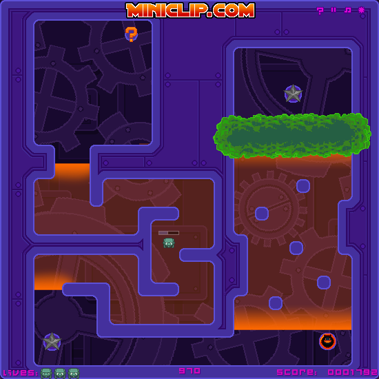 As the levels progress, new mechanics come into play: bombs that must be picked up and strategically dropped to clear paths through thick green moss, and water sections where released bombs float to the surface. These elements layer additional puzzle-solving onto the arcade action, demanding both quick reflexes and careful planning under time pressure. You’ll need to think several steps ahead—placing bombs too early or too late can trap you in an inescapable corner.