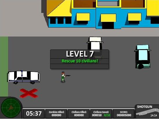 The core objective is straightforward yet tense: escort a set number of civilians to a designated safe zone before the countdown clock hits zero or you get overrun. Each civilian you rescue acts as both an ally and a liability—these NPCs often wander off or panickedly dart toward the nearest zombie, forcing you to constantly adjust your path and prioritize targets. This adds a layer of strategy beyond pure shooting as you must anticipate civilian movements and lure the undead away from your charges.