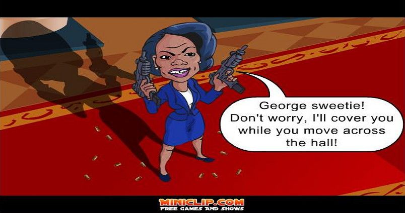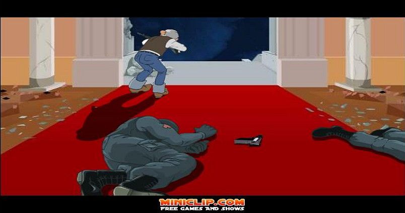 The narrative premise of Bush Shoot-Out is delightfully over-the-top: a terrorist cell storms America’s most famous residence, forcing the President himself into a firefight. Between levels, short text interludes set the scene—no voice acting, just plain text captions—but they do enough to keep you invested in the unfolding crisis. The switch to Condoleezza Rice mid-game adds a twist, giving players a fleeting sense of what it feels like to take the fight from behind a different crosshair.