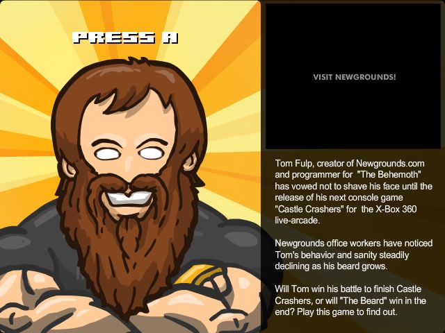 Despite its straightforward setup, the meta-narrative is oddly endearing. It shines a spotlight on indie development camaraderie and the playful rivalry that once defined the Flash era. Fans of The Behemoth or long-time Newgrounds users will pick up on the in-jokes scattered throughout the game’s title screen and credits—an affectionate nod to Tom’s beard as much as to his creative legacy.