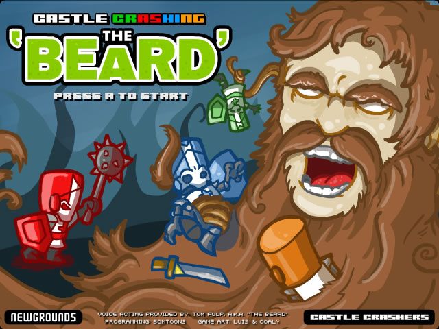 Castle Crashing: The Beard delivers a bite-sized homage to the classic Castle Crashers formula, swapping out the traditional fantasy foes for an enormous floating Tom Fulp head sporting an even more enormous beard. Players guide one of the familiar knight characters through platforming sections while unleashing beard-whipping attacks on poor Tom as he hangs in the sky. The controls are immediately responsive: movement, jumping and striking all feel tight, even if the game’s shortened scope doesn’t match the depth of its inspiration.
