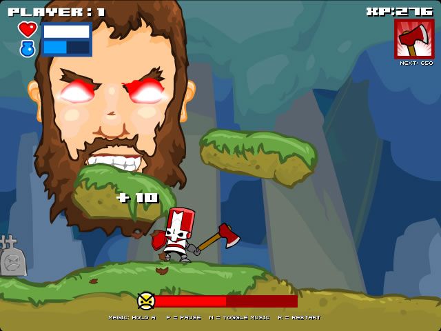 True to its comedic premise, Castle Crashing: The Beard treads lightly on narrative in favor of gag-centric presentation. The premise is simple: Tom Fulp has vowed not to shave until his dream game launches, so his Newgrounds colleagues crafted this side-project to roast him—literally. There’s no lengthy exposition; you jump right into the action with the premise explained in a brief splash screen.