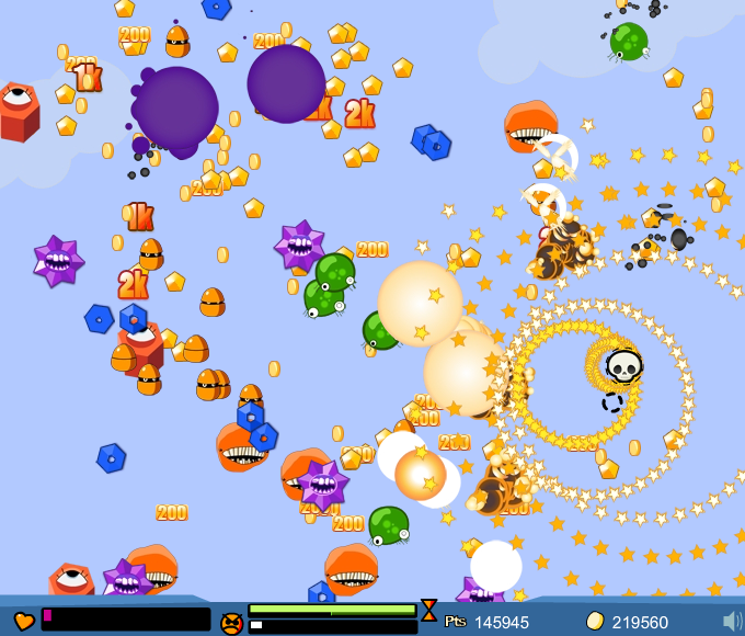 Death vs. Monstars throws you into an unrelenting arcade-style shooter where your only hope is a ravenous skull under your precise control. Each of the ten levels challenges you to survive until you either reach a kill quota or wait out the timer. The tension ramps up quickly as waves of bizarre creatures converge, demanding fast reflexes and strategic maneuvering.