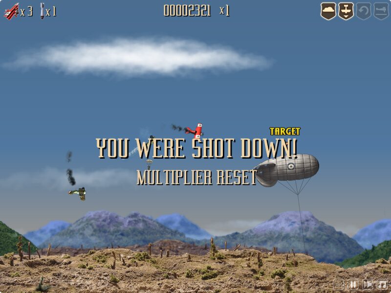 Building on its predecessor’s arcade roots, the sequel introduces a meaningful scoring system with multipliers to reward consecutive successes. Points are earned by shooting down enemy aircraft, destroying rolling AA trucks and tethered blimps, or even rescuing stranded pilots parachuting from damaged planes. However, the stakes have been raised: you start with only five lives, so each crash or fatal hit resets your multiplier and brings you closer to a game over.