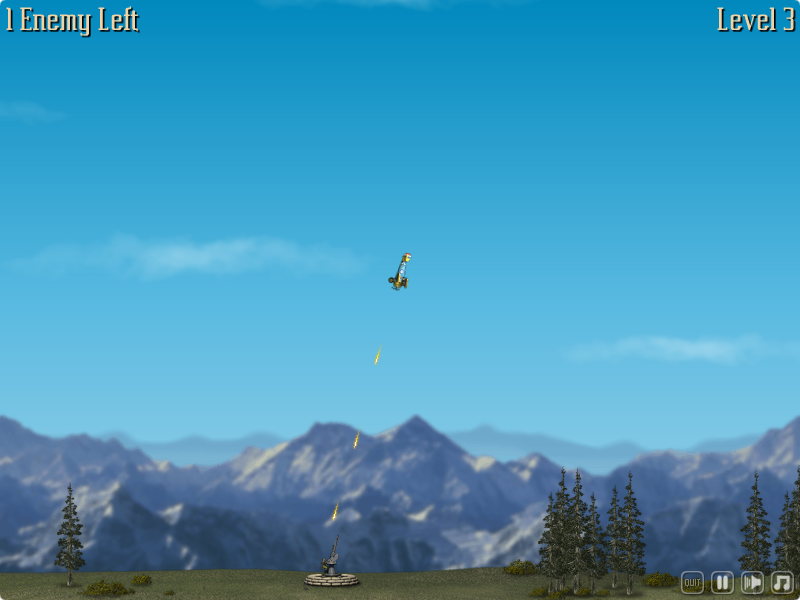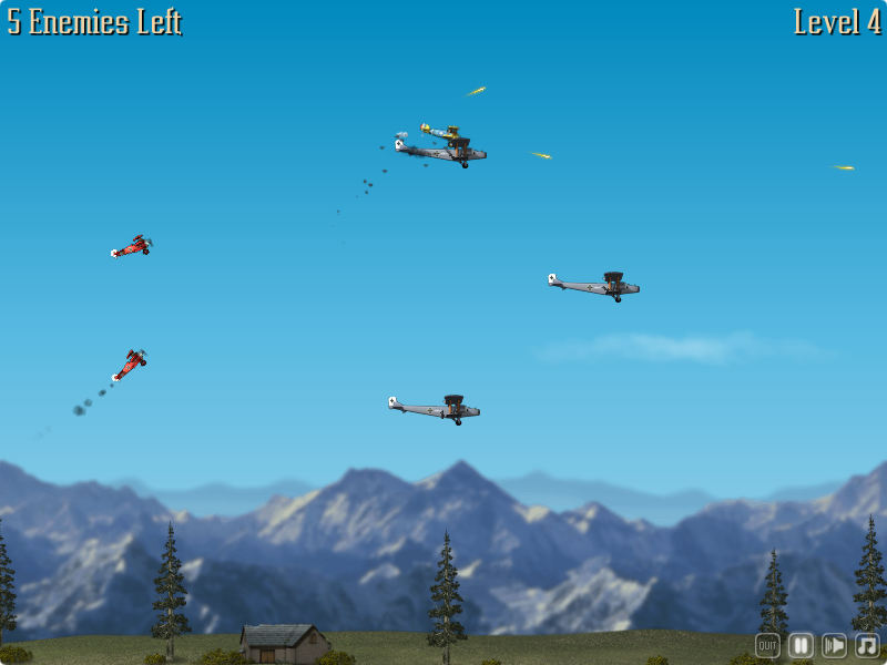 The range of enemies you face keeps gameplay fresh and demanding. Static anti-aircraft guns pepper the ground below, forcing you to weave through bitter flak. Slow but sturdy German bombers lumber overhead, their rear gunners ready to blast away any overzealous Camel pilot. Hostile fighter planes come in two flavors: red-painted Regular Pilots, who go down with a few good bursts, and the more sinister black-and-white Ace Pilots, who laugh off minor taps and require precise shooting to bring down.