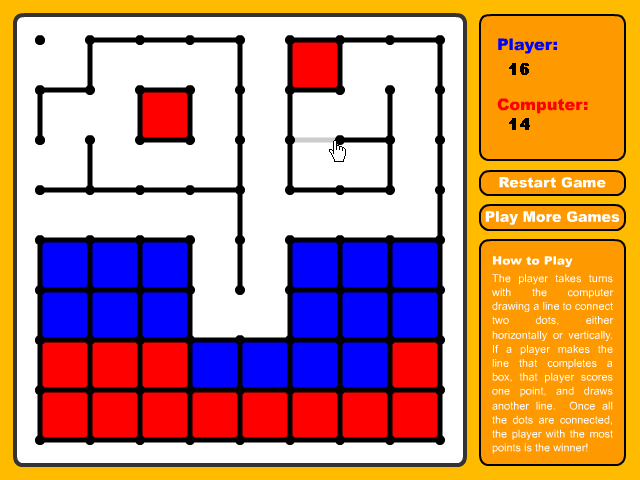 What elevates Dots beyond its humble Flash origins is the pacing and polish of the computer AI. The CPU rival doesn’t just follow predictable patterns; it adapts dynamically to your moves, forcing you to think several steps ahead. Early on, it may commit basic traps, but as you progress, the AI learns to avoid gifting you chains of boxes and instead challenges you to create long, complex sequences.