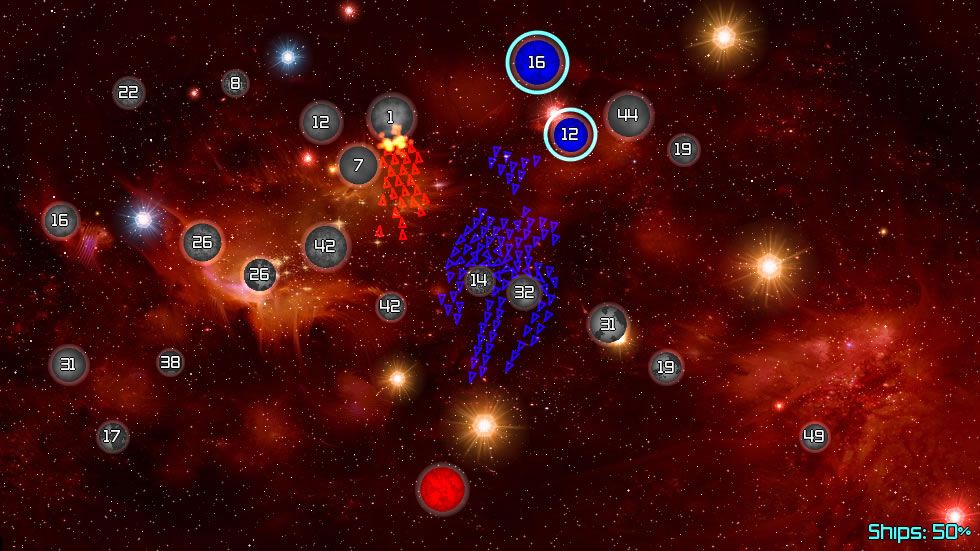 Graphically, Galcon embraces minimalism. Planets are rendered as colored circles that glow when under your command, with ship icons represented by small dots or triangles moving in straight lines. This pared-down visual style ensures that the flow of combat is always clear, even when dozens of fleets crisscross the screen. The lack of flashy particle effects or detailed textures might seem underwhelming at first glance, but it’s precisely this simplicity that keeps your focus on strategic maneuvers rather than visual clutter.
