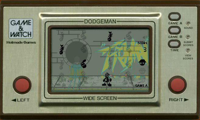 Game & Watch: Dodgeman faithfully adapts the core mechanics of the original flash arcade title Dodgeman 2, delivering a simple yet addictive dodge-the-falling-objects challenge. The player controls Dodgeman at the bottom of the screen, shifting him left or right to avoid an onslaught of items tumbling from above. Each object that safely exits the bottom boundary awards one point, encouraging careful positioning and split-second decision-making.